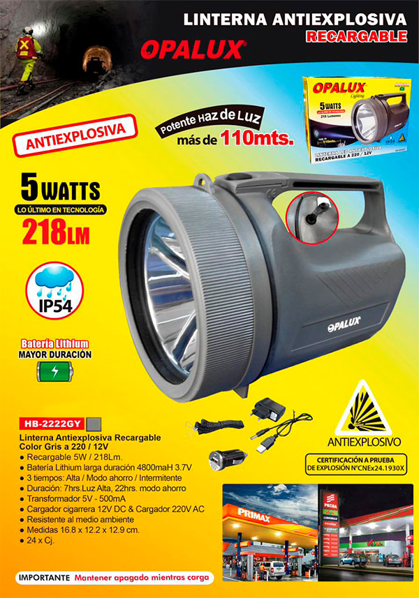 Linterna Antiexplosiva recargable a 220 / 12V 5W