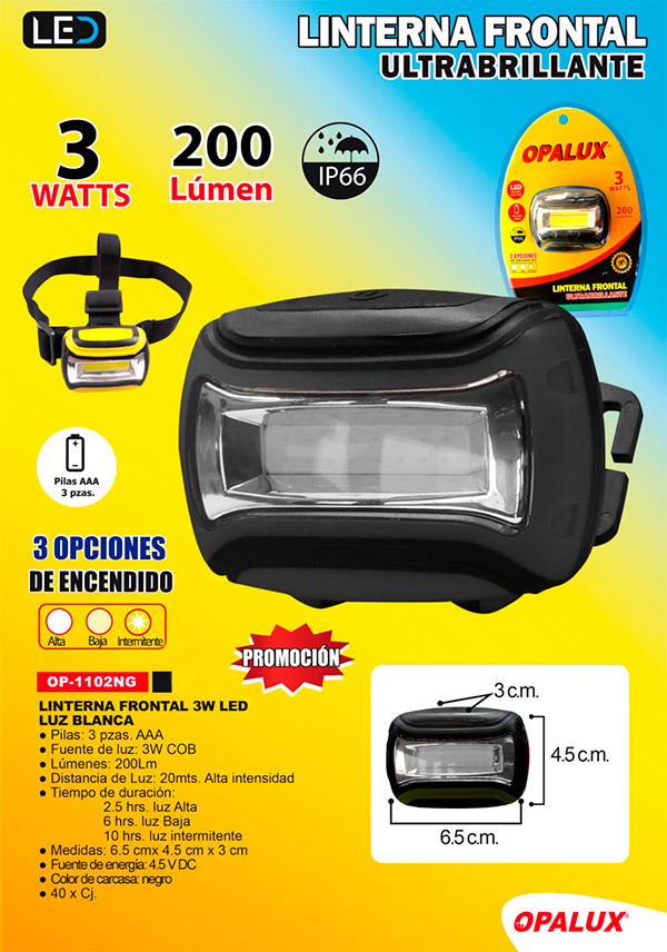 Linterna frontal ultrabrillante 3W LED luz blanca