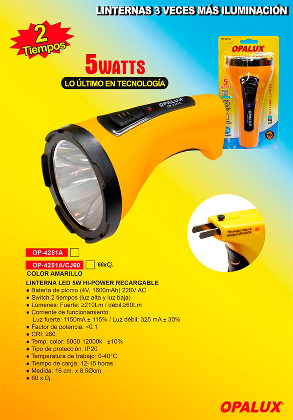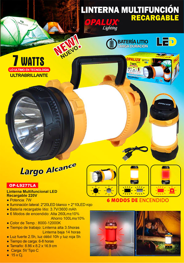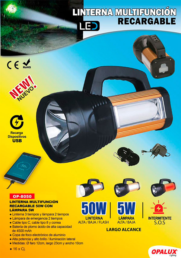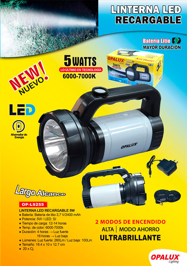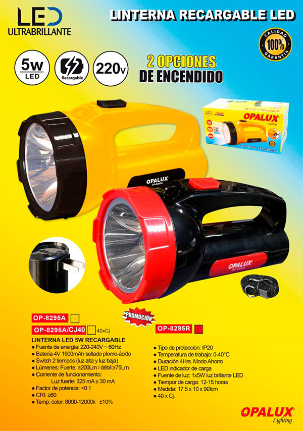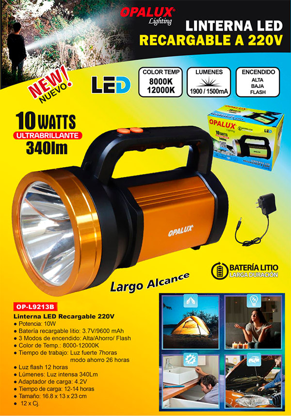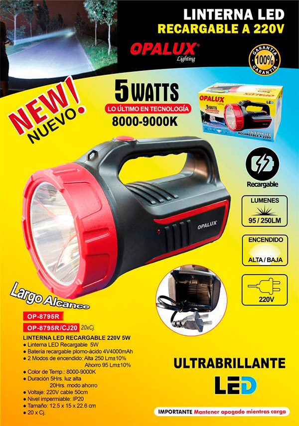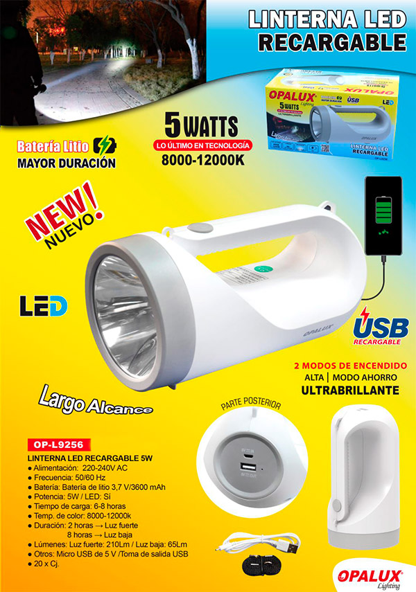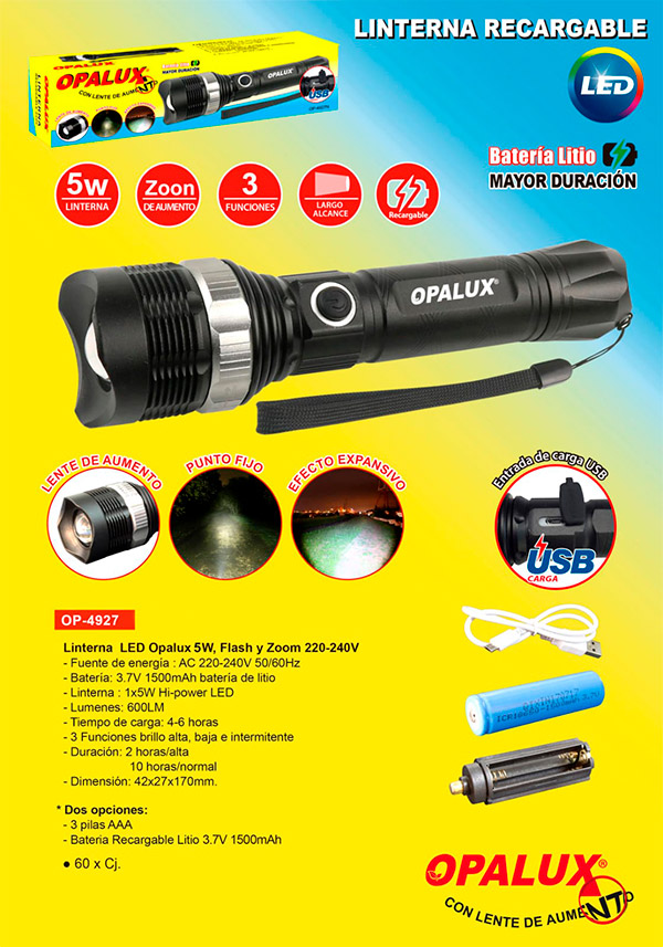 Linterna LED recargable 5W, Flash y Zoom 220-240V