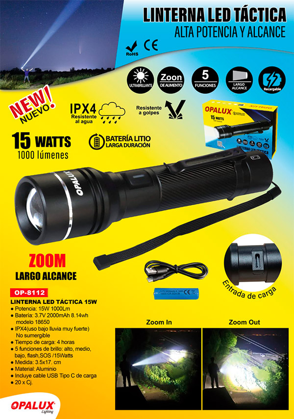 Linternas recargables LED 5W y 8W con Zoom y enfoque