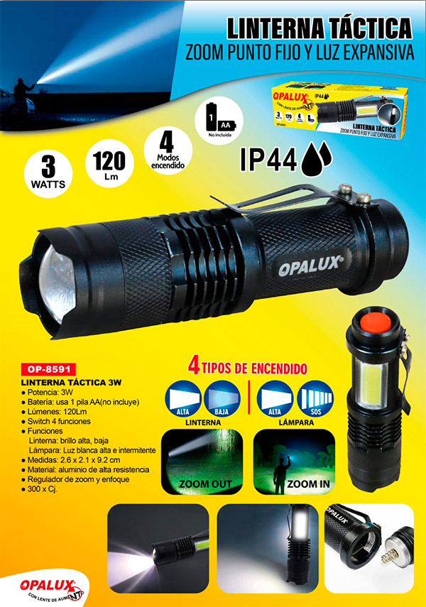 Linterna Táctica 3W IP44 con Zoom y enfoque
