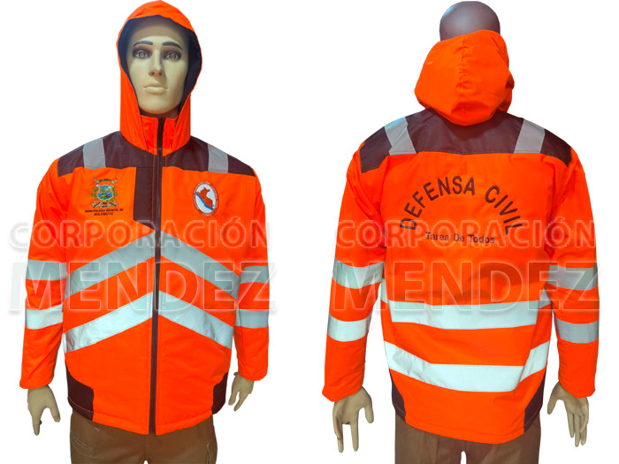 Material: Tela impermeable con cinta reflectiva 3M ploma, con bordado pecho y espalda, con forro interior de polar